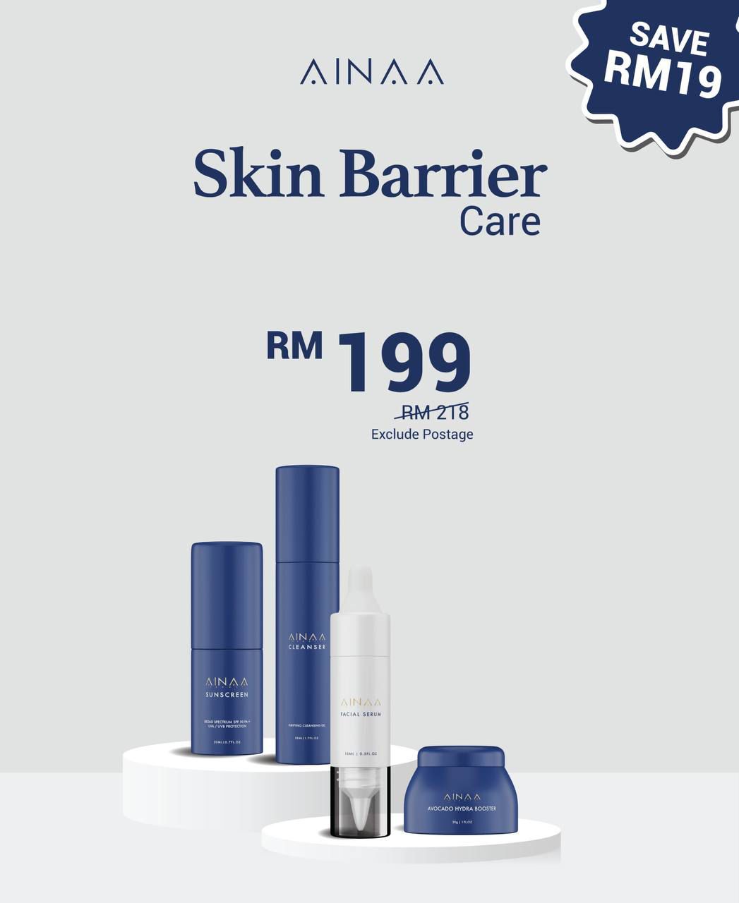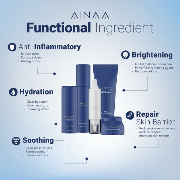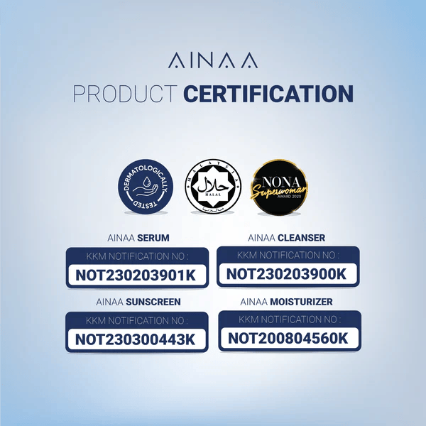 This set includes AINAA Serum, Cleanser, Moisturizer, and Sunscreen.